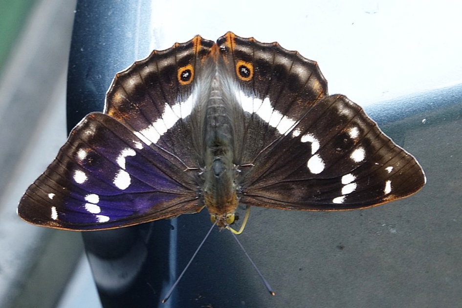 - Op de plek van de wilg die weggehaald is, komt een boswilg. Jeroen kan aan een goede stek komen en neemt die mee. Deze wilg is een aantrekkelijke plek voor de grote weerschijnvlinder, zie de foto in de bijlage. Een boswilg heeft dikkere, bredere, rondere bladeren dan de ons bekende wilg. Het laatste nieuws is dat de boswilg er nu staat!