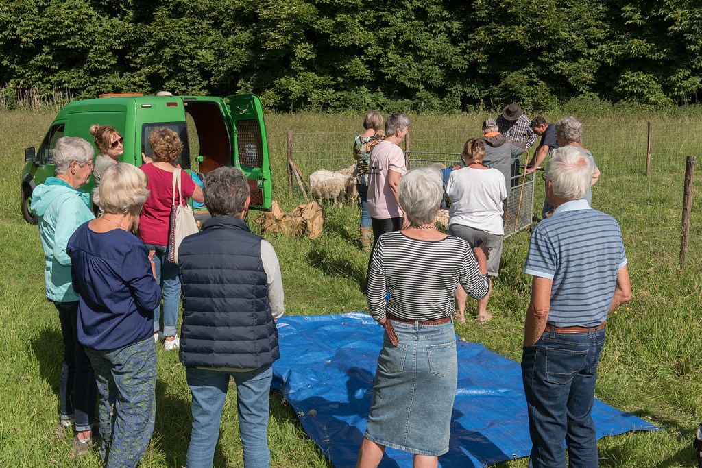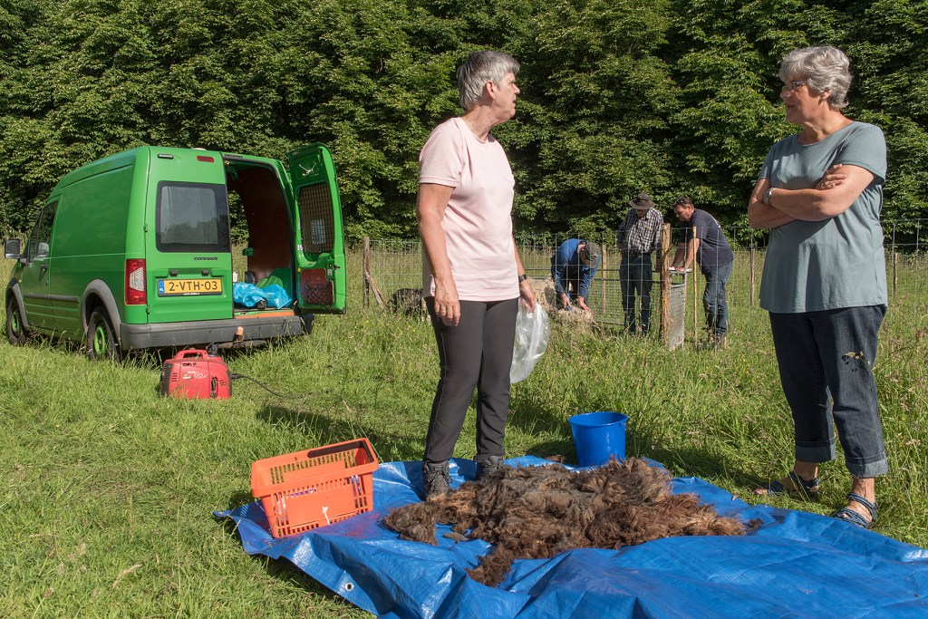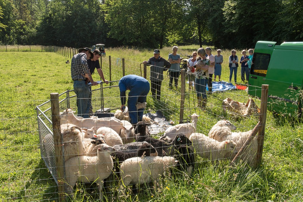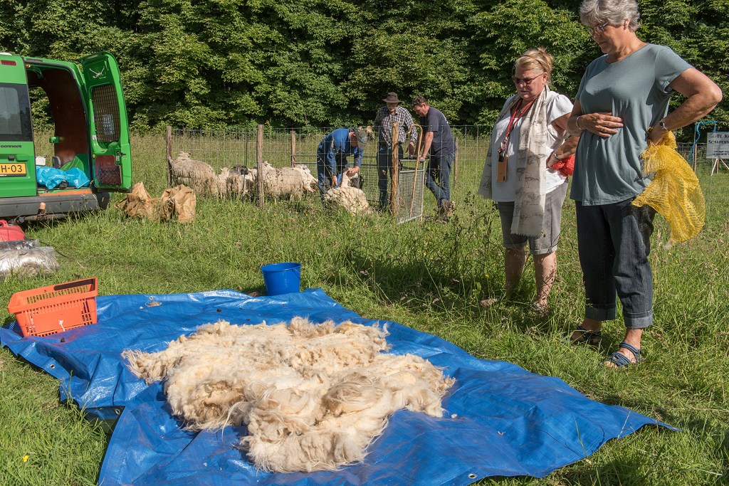 Onder grote belangstelling zijn gisteren de schapen geschoren. Er zijn door medebewoners gelijk een paar mooie vachten gekocht. In de fotogalerij hieronder staan de foto’s die Bert van deze gebeurtenis heeft gemaakt. Klik op een foto om deze te vergroten.